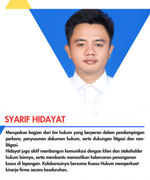 Berbekal integritas, keahlian, dan komitmen terhadap keadilan, kami memberikan layanan hukum yang menyeluruh, efektif, dan sesuai dengan kebutuhan spesifik setiap klien.